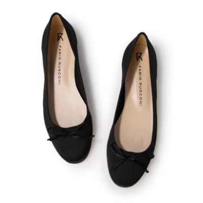 丸みを帯びたトゥとリボンがフェミニンな印象のバレエシューズ。